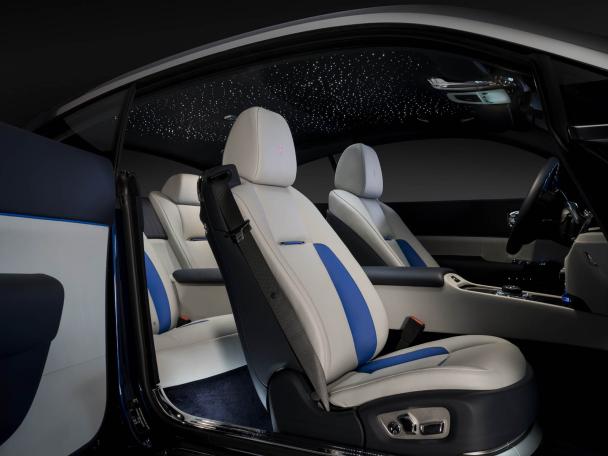 The Wraith Busan gets grey leather seats with Cobalto Blue and the Starlight Headliner glimmering above