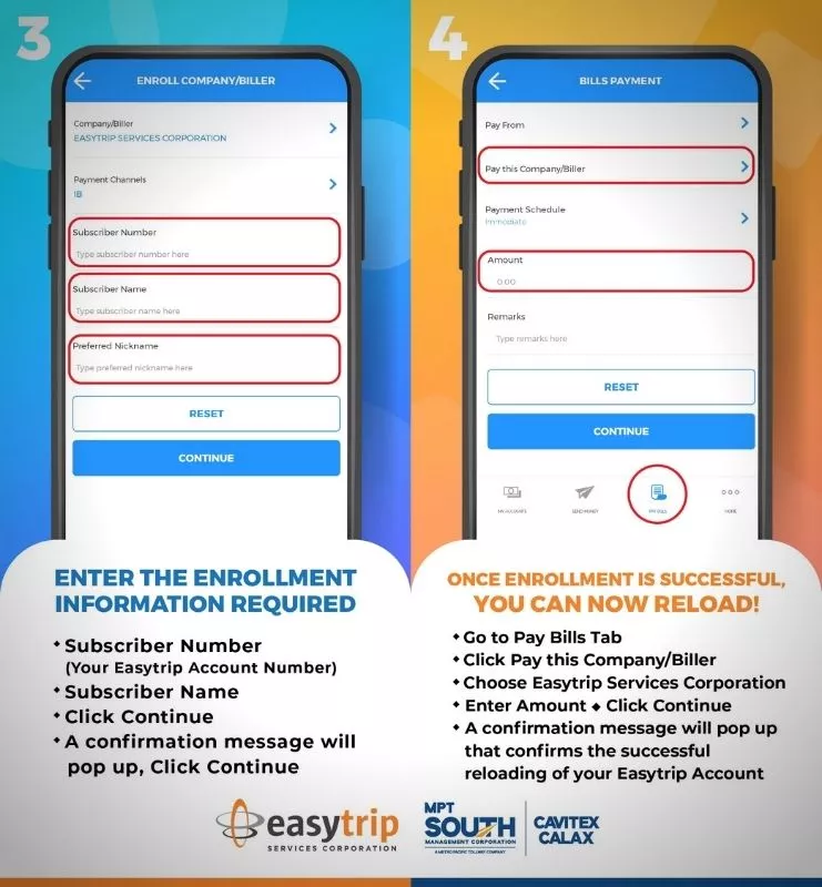 3. Click enrollment, company/biller, enroll, then select Easytrip Service Corporation