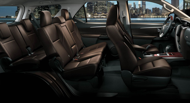 In detail, the rugged appearance and good layout give Fortuner 2017 an ample interior space that can accommodate up to 7 passengers. A decent amount of legroom in the first and second row makes every journey with this vehicle enjoyable.
